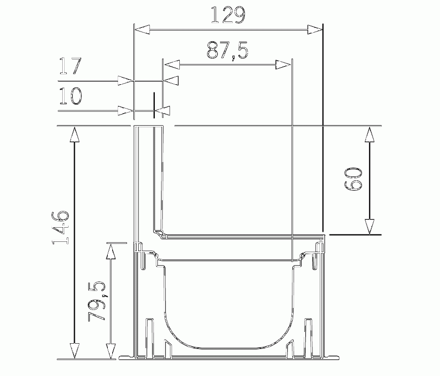 - Breedte gootelement inwendig/uitwendig 100/129 mm.