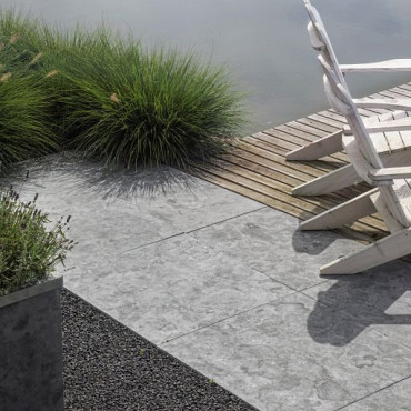 Blue Moon Piazzo terrastegels in de maat 60x60x2,5cm van Redsun geven uw tuin een rustieke en exclusieve uitstraling. De bovenzijde van de tuintegels zijn gevlamd en geborsteld, hierdoor zijn ze minder krasgevoelig en verkleuren deze nauwelijks. Het vlammen veroorzaakt een thermische schok waardoor het oppervlak van de steen openbarst, zo ontstaat de specifieke structuur van deze steen na het borstelen voelt de steen heerlijk zacht en stroef aan.