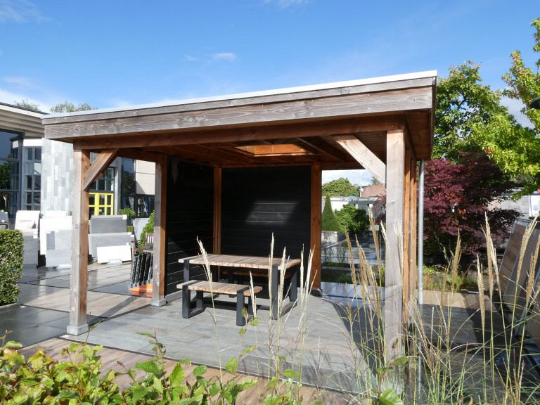 SHOWMODEL overkapping Douglas 400x350cm incl. wanden, dakkoepel en raam | OP=OP