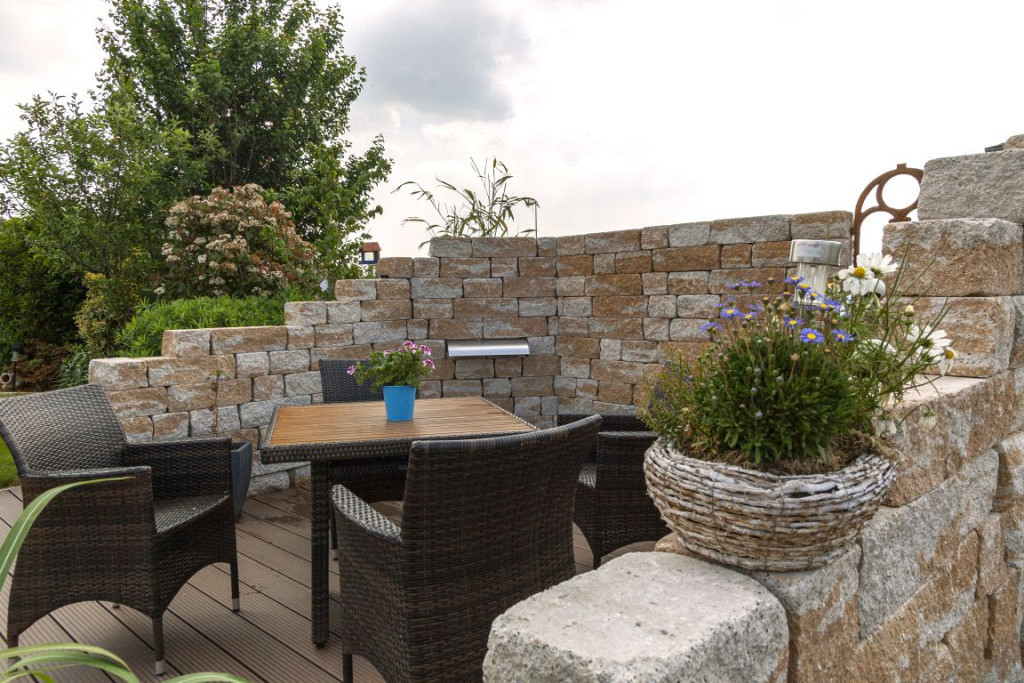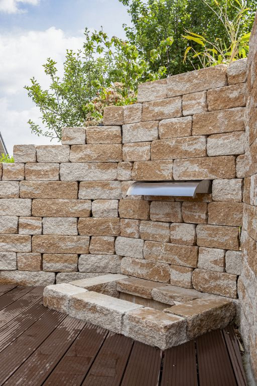 Stapelbaar muurelement in diverse kleuren, gekloofd, getrommeld in diverse diktes en formaten. Zeer geschikt voor tuinmuren, ruiïnes en andere bouwwerken.