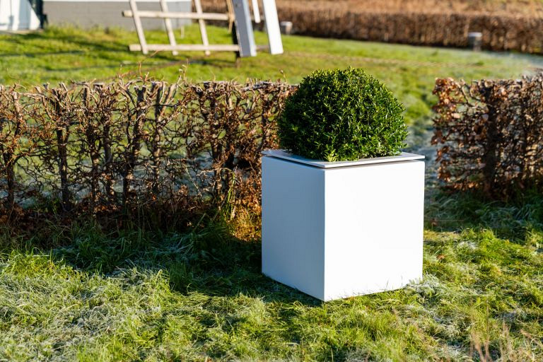 De DOMUS-plantenbak wordt gekenmerkt door zijn zwevende rand aan de bovenkant. Dit zorgt voor een frisse, luchtige uitstraling van een tuin of op het terras.