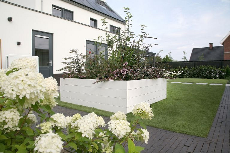 Dankzij de modulaire opbouw stel je eenvoudig je ideale formaat samen – van compacte terrasbak tot lange witte borderlijn. Het verzinkte staal is duurzaam gepoedercoat en daardoor bestand tegen weer, wind en verkleuring door UV-licht.