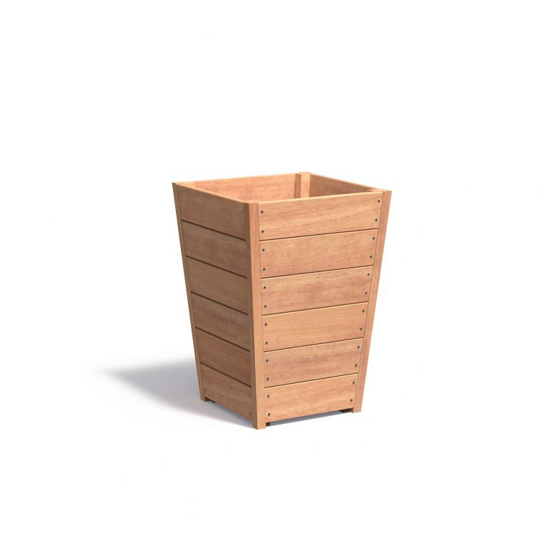 De vierkant tapse vorm van de TAP zorgt voor een chique uitstraling. Dit houten exemplaar sluit uitstekend aan op projecten met vierkante plantenbakken.