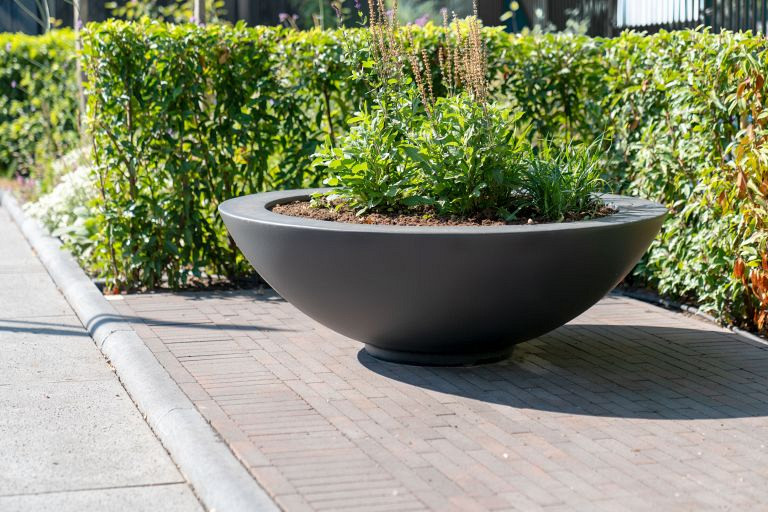 De schaalvormige CEDER past goed op een groot terras. We adviseren seizoensgebonden beplanting (viooltjes, afrikaantje e.d.) aan te brengen in deze plantenbak. Dit geeft tuinen een vriendelijk karakter.