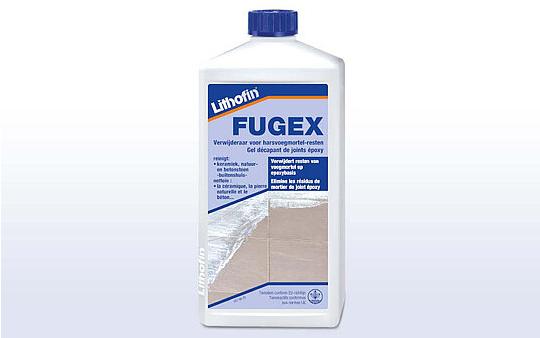 Lithofin Fugex is een speciale reiniger welke geselecteerde en hoogwerkzame organische oplosmiddelen bevat. Deze zijn specifiek bestemd voor het snel en doeltreffend verwijderen van één- en twee-componentige harsvoegselresten. Het product bevat geen zuren en is dus ook geschikt voor het reinigen van ondergronden uit betonsteen en kalksteen. Lithofin Fugex weekt resten van draineerbaar (waterdoorlatend) voegsel los van het oppervlak. De gelachtige substantie vergemakkelijkt de verwerking, maar men kan het product nog eenvoudig afspoelen met water.