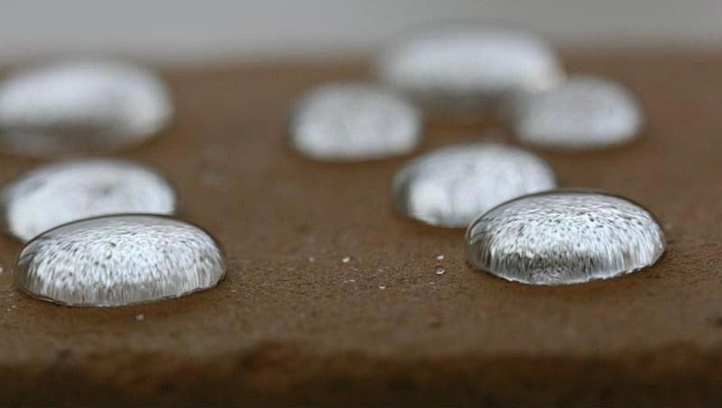 De nanowerking wordt ook wel lotuseffect genoemd, omdat de bladeren van de lotusbloem zichzelf schoonhouden en op dezelfde manier ongevoelig zijn voor vocht en vuil. Het lotuseffect wordt veroorzaakt doordat het oppervlak waterafstotend is. Wat een waterdruppel doet ten opzichte van het materiaal dat wel of niet behandeld is cq waterafstotend is, leggen wij graag uit met produktfoto 2