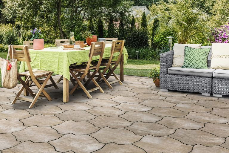 Natuurlijke uitstraling: Omdat polygonvormige tegels geen strikte vierkante of rechthoekige vormen hebben, lijkt de bestrating vaak meer in harmonie met de natuur en past het goed in tuinen met een meer informele of natuurlijke uitstraling.