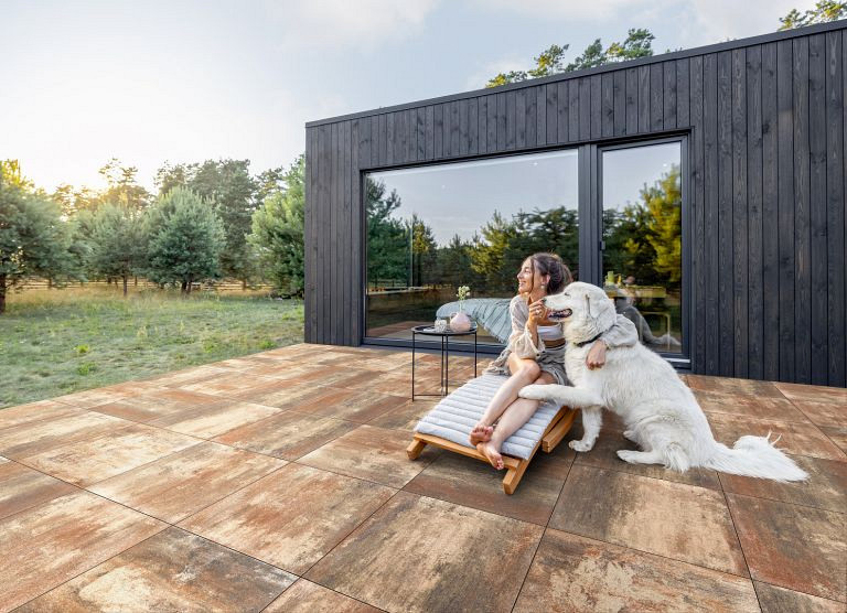 De strakke betonnen sierbestrating uit de RECTO serie van Redsun geeft iedere tuin een moderne en rustige uitstraling. Dankzij het facetloze ontwerp en de strakke lijnen ontstaat een tijdloos en minimalistisch bestratingsbeeld.