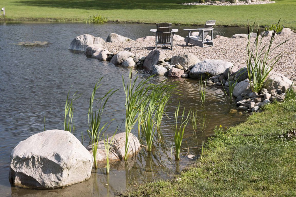 Ook met afgerond natuursteen kunnen mooie vijvers en taluds gemaakt
