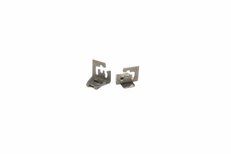 Het RVS cliphet® P clipje wordt gebruikt om de Hillfence dubbele staafmatten aan de H-Gleufpaal® te hangen zonder te schroeven. 1 clip benodigd per paal (2 per scherm).