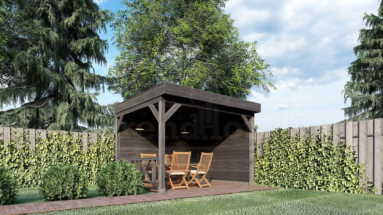 Buitenverblijf Casa is het instapmodel buitenverblijf met plat dak, strak vormgegeven met aan de voorzijde een overstekend dak. De constructie is op een minimalistische manier opgebouwd met 120x120mm staanders, deze is snel te monteren door