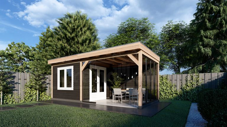 Buitenverblijf Casa is het instapmodel buitenverblijf met plat dak, strak vormgegeven met aan de voorzijde een overstekend dak. De constructie is op een minimalistische manier opgebouwd met 120x120mm staanders, deze is snel te monteren door