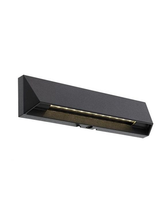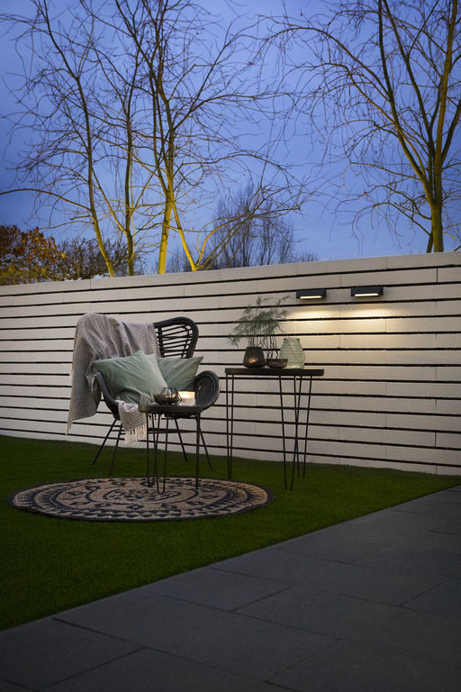 De WEDGE SLIM DARK is een slank wandarmatuur met een brede lichtuittrede die perfect is om te gebruiken als oriëntatieverlichting, bijvoorbeeld op een laag muurtje langs een pad of oprit.